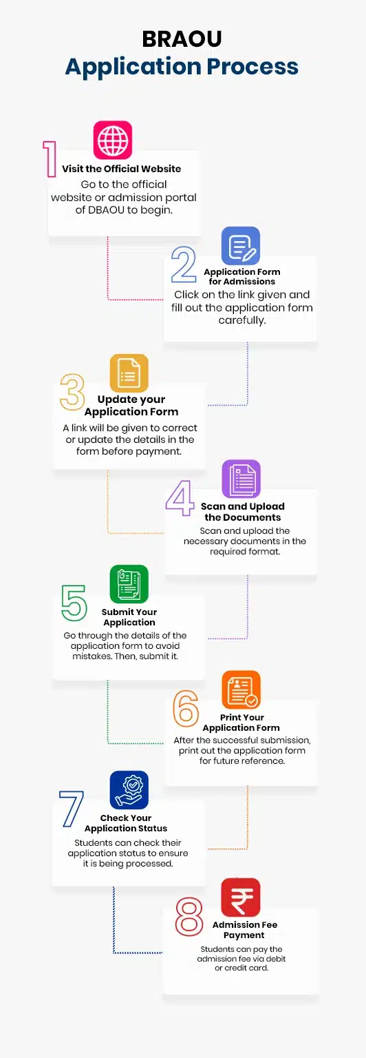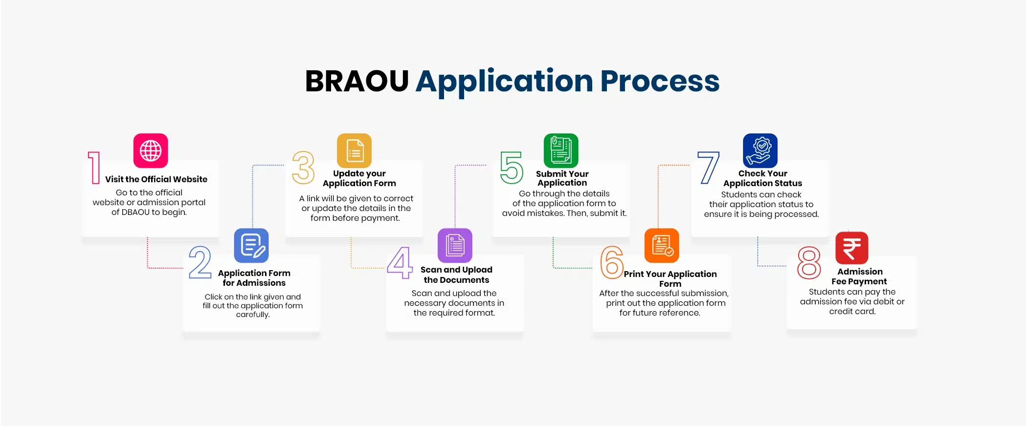 Dr. B.R. Ambedkar Open University (BRAOU) follows a two-cycle admission system in January and July. The last date for BRAOU admission for the July 2025 session is extended till 31st July 2025. Interested students can apply through the official BRAOU admission portal.